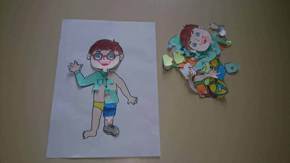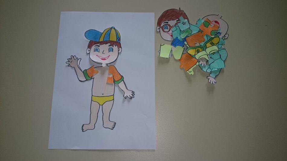 Dajemo vam primer zanimljivog učenja i obnavljanja kategorija odeća i obuća. Na jednom papiru nacrtajte dečaka/devojčicu koji na sebi nema odeću i obuću. Na drugim papirima nacrtajte dečaka/devojčicu koji na sebi ima odeću i obuću i isecite u obliku slagalice. Dete ima zadatak da složi slagalicu. Osim za učenje i obnavljanja odeće i obuće, ova aktivnost je korisna za održavanje pažnje, uočavanje delova i celine, učenje delova tela.