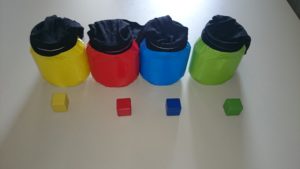 Za ovu aktivnost su vam potrebne tegle (staklene ili plastične), papir u boji (po mogućstvu samolpeljivi kolaž) i čarape. Tegle obložite papirima različite boje da dete ne bi videlo šta se nalazi u njima. Čarape stavite na tegle i pričvrstite ih gumicama. Zadatak može da ima različite varijante. Jedna od njih je da ubacuje različite predmete (različite oblike, kocke, lopte i sl.) u tegle iste boje. Zatim, u tegle možete da sakrijete voće ili neki drugi predmet, a dete ima zadatak da ga izvadi i kaže koje je to voće i da opiše kako izgleda. U tegle možete da sakrijete slova, a dete ima zadatak da izvadi slovo i da kaže koje je slovo u pitanju. Možete da mu postavite pitanje koja reč počinje na slovo koje je pronašao u tegli. Na taj način dete pripremate za analizu i sintezu glasova u reči. Svaki zadatak može da se sastoji od stavljanja predmeta u teglu i vađenja predmeta. Pomoću ove aktivnosti sa mlađim detetom učite pojmove ima/nema.