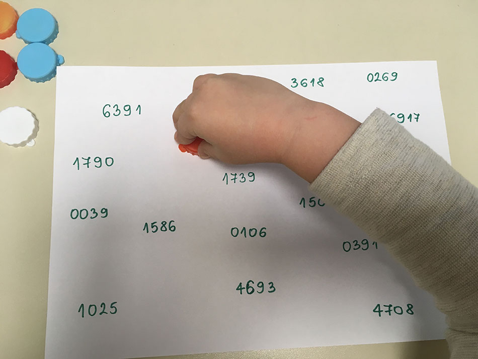 - Možete da kombinujete vežbanje vizuelno i auditivno izloženih elemenata. Ispred deteta stavite čepove ili papiriće u boji, a zatim prekrijte rukama ili papirom. Dete treba da zapamti i ponovi. Na papiriće ili čepove možete napisati brojeve, slova ili reči.