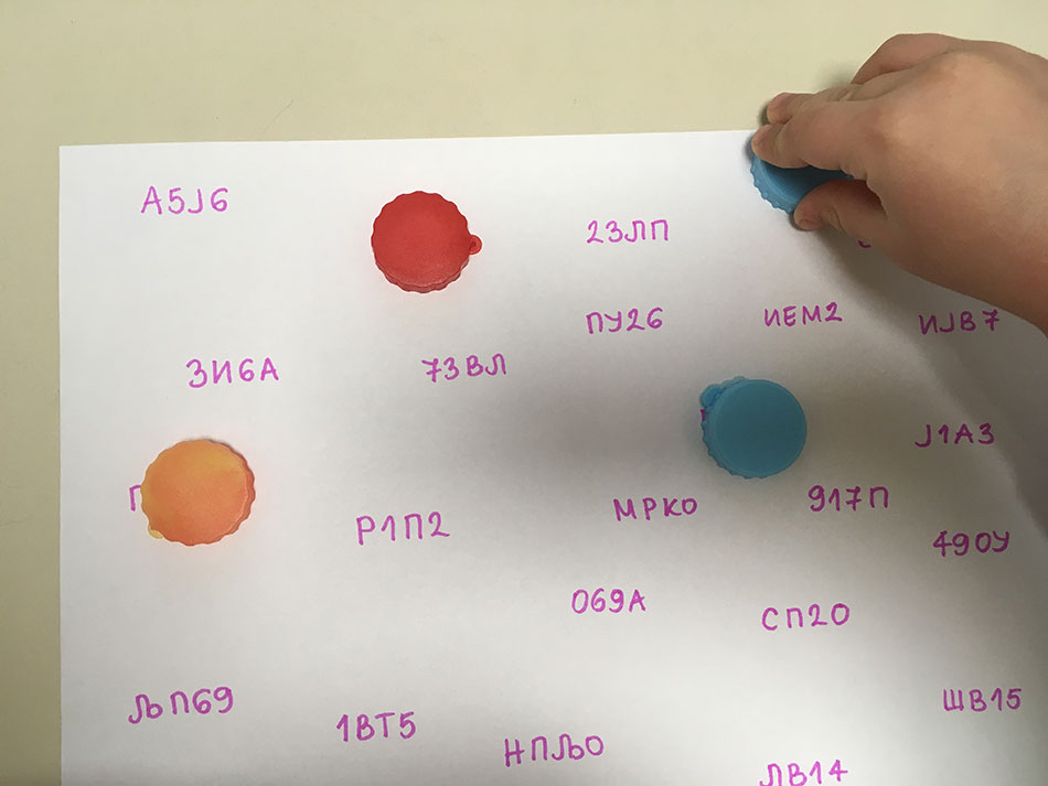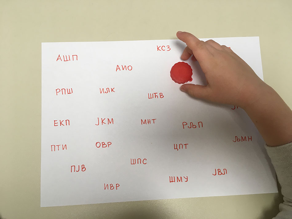 - Na belom papiru ili u svesci napišite kombinacije brojeva, slova ili reči koje počenju na određeno slovo, a zatim detetu recite šta treba da pronađe i obeleži (može da prekrije papirićem u boji, čepom ili slično). Počnite od manjeg broja elemenata, a zatim povećavajte. Na ovaj način vežbate i vizuelno pretraživanje.